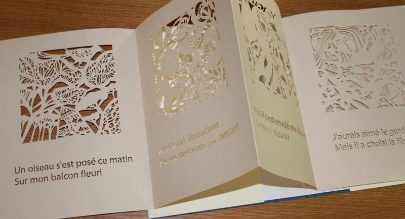 Recueil de poèmes illustré par 9 découpages au laser signés Grazia Restelli.
